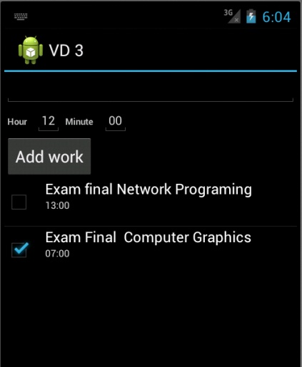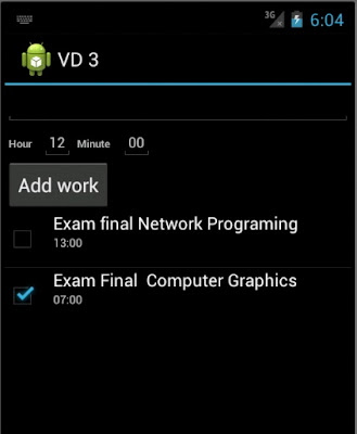 Yêu cầu: Xây dựng ứng dụng dạng To Do List: Cho phép nhập vào nội dung công việc và thời gian thực hiện công việc rồi đưa vào list công việc. Cho phép xóa các công việc khỏi list.