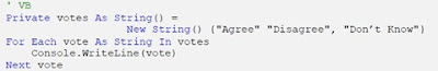 Không những thế, bạn có thể tìm thấy mẫu thiết kế Interator sâu trong các thư việc .NET, nó là một trong 2 mẫu thiết kế mà là một phần của bản thân ngôn ngữ C# và VB (mẫu thiết kế khác là Observer). Cả hai ngôn ngữ đều có một kiến trúc được xây dựng sẵn tạo điều kiện đổi các tập hợp: foreach trong C# và For Each trong VB