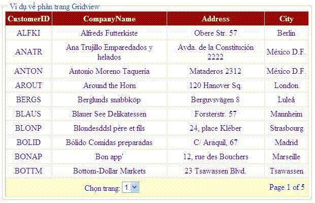 Trong bài này mình sẽ hướng dẫn các bạn viết phân trang đơn giản trong gridview. Với cách chọn trang hiển thị từ DropDownList. Trong ví dụ này hiển thị 10 bản ghi mỗi trang. Khi chọn trang từ DropDownList thì dữ liệu sẽ hiển thị theo trang được chọn